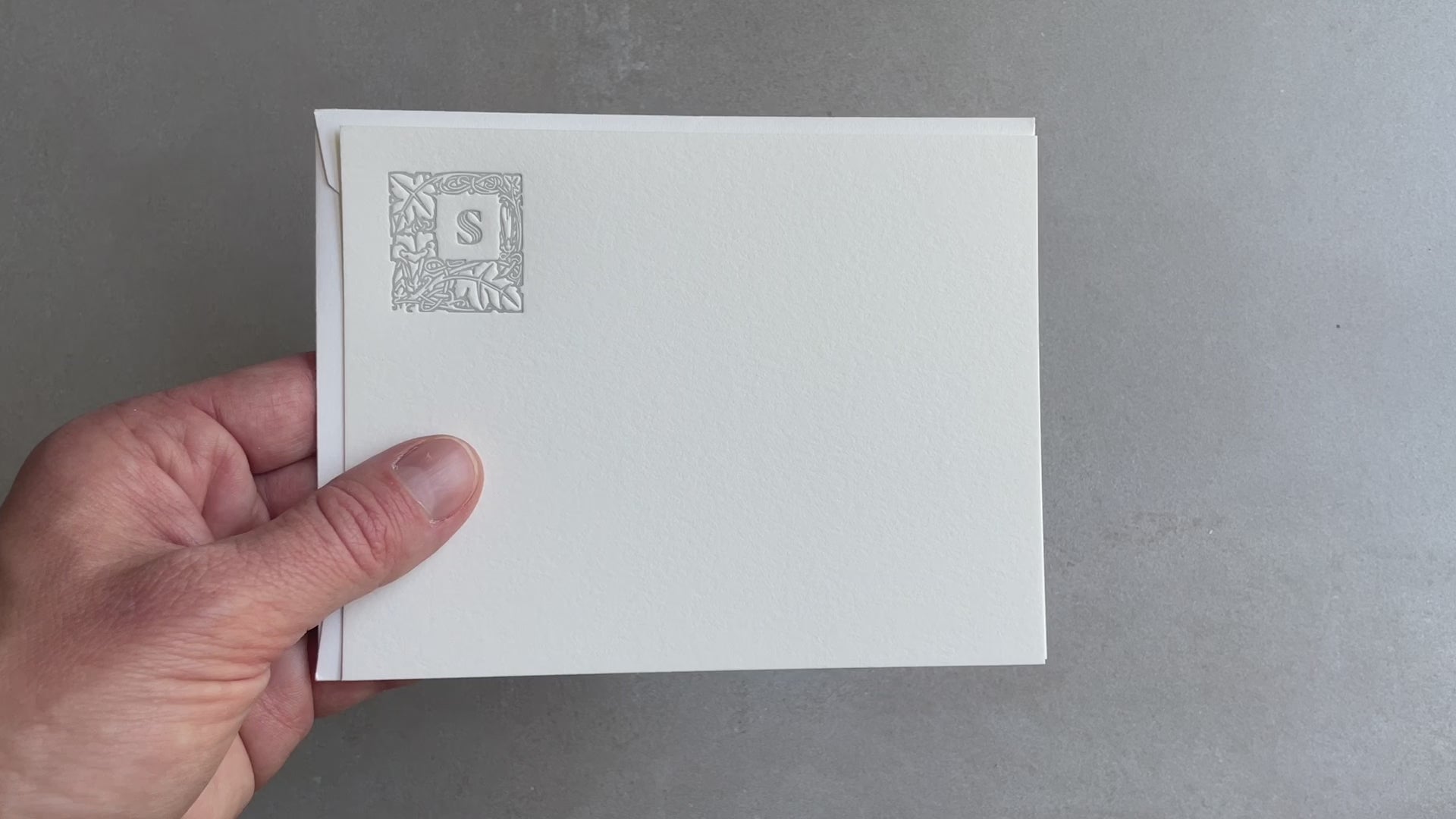 Set of Custom Letterpress Stationery Notecards. Stationery pieces are personalized with your custom initial inside a decorative frame.