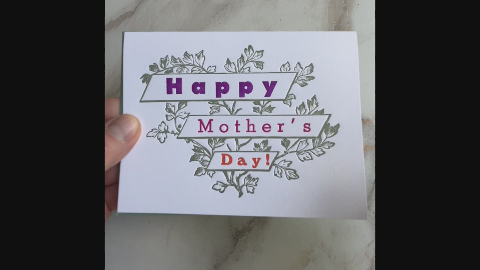 Letterpress Printed Happy Mother's Day, Folded Card with Envelope.