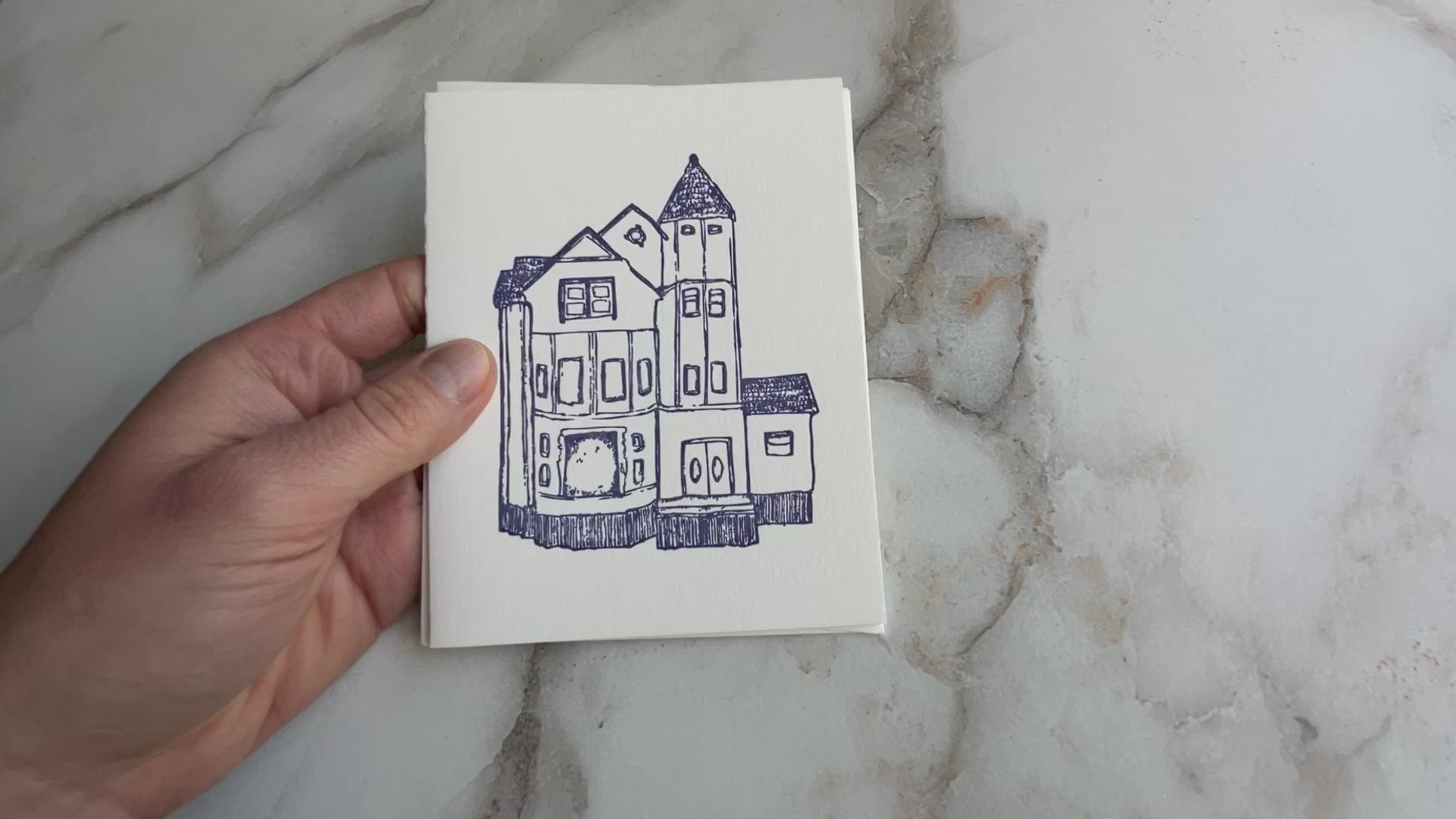 Letterpress Victorian House Folded Card. Cards are letterpress printed using a printing plate made from an original drawing by the artist. A wonderful gift to yourself or the stationery fanatic in your life.