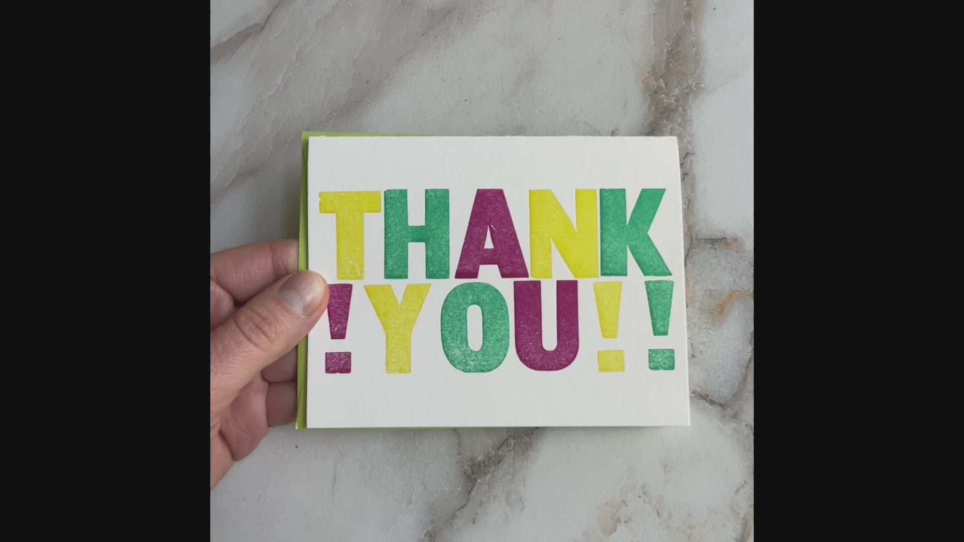 Letterpress THANK YOU Card, Colorful Folded Notecard with Envelope.