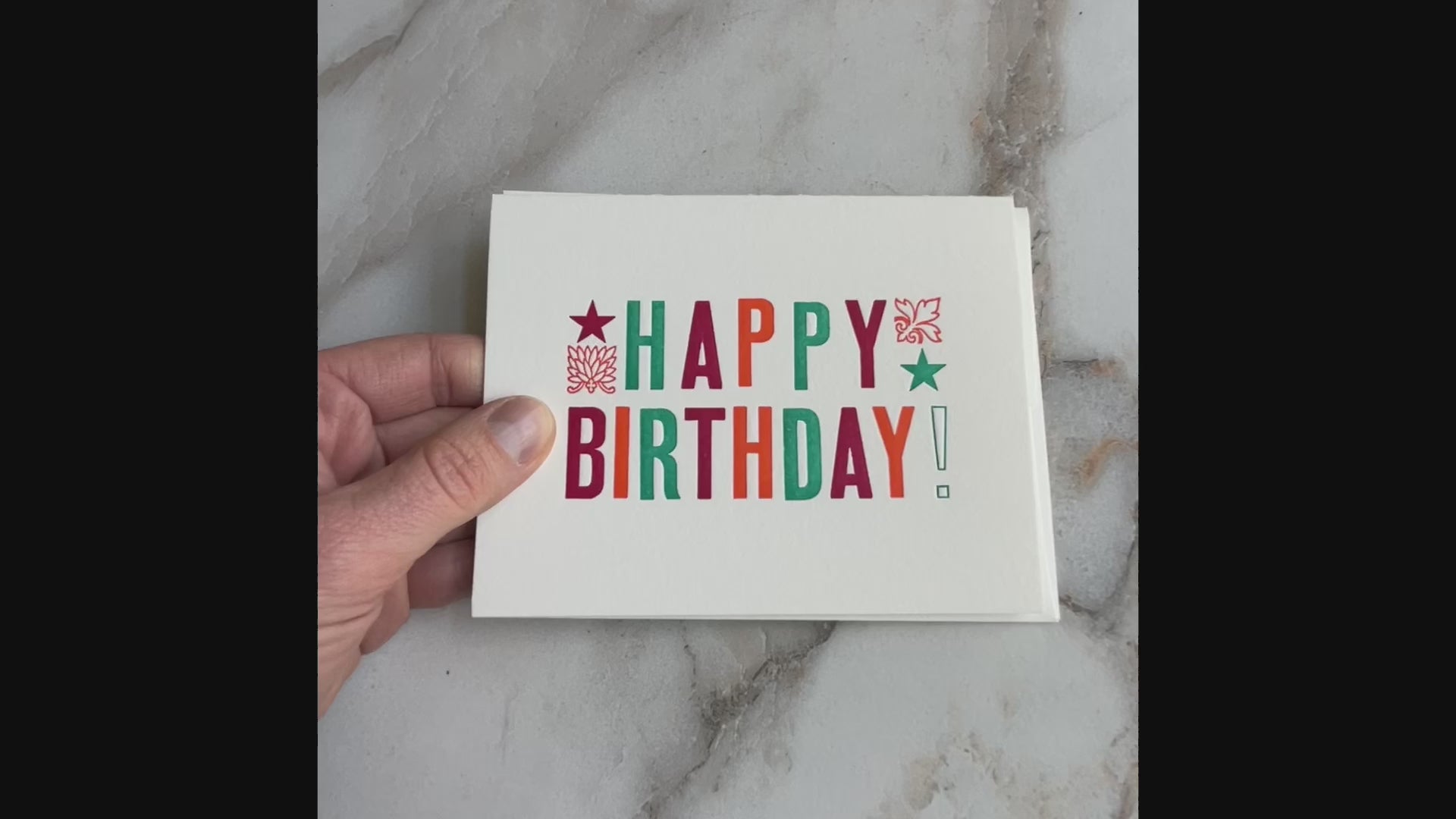 Set of 10, Letterpress Folded Birthday Cards. Give a shout, HAPPY BIRTHDAY! with these fun cards. These three-color cards printed using vintage wood type. A wonderful gift to yourself or the stationery fanatic in your life.