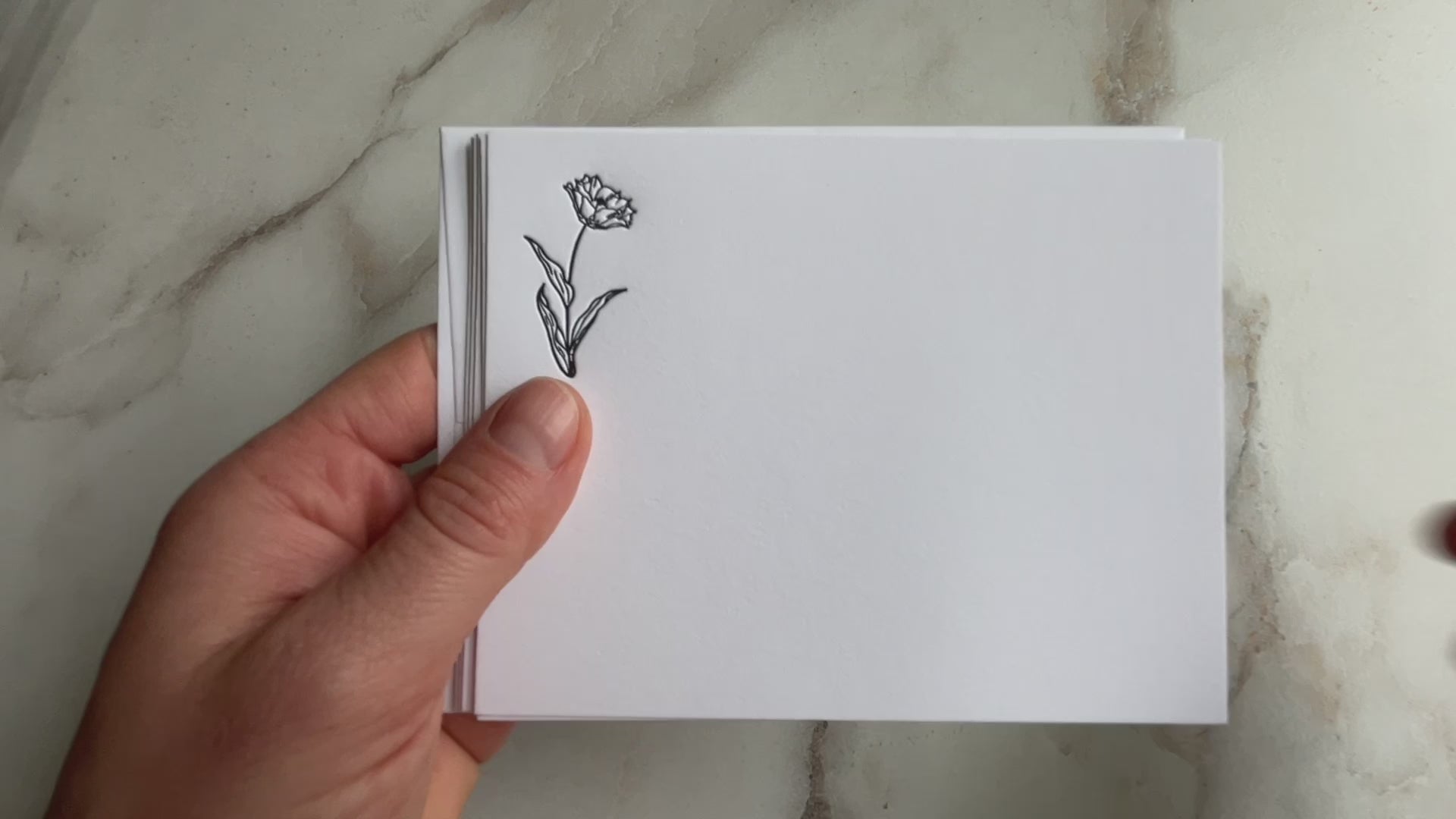 Cards are letterpress printed on a 100% cotton; tree-free paper specially designed to showcase the sculptural qualities of letterpress printing. Set comes with 5 unique letterpress printed cards and 5 envelopes with each of the flowers in the 5-piece set letterpress printed on the back flap of the envelope. Envelopes 100% cotton and match the cardstock. Printing inks are archival and designed to last the test of time.