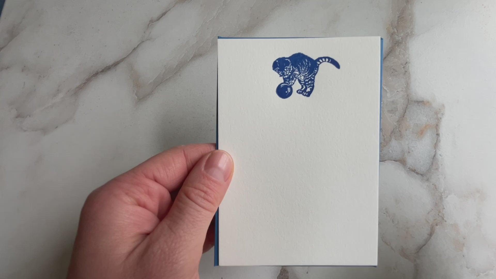 Set of 5 Letterpress Notecards. Cards are printed with an antique letterpress playful kitten graphic. Cards are printed in royal blue ink and come with matching envelopes. A wonderful gift to yourself or the stationery fanatic in your life.