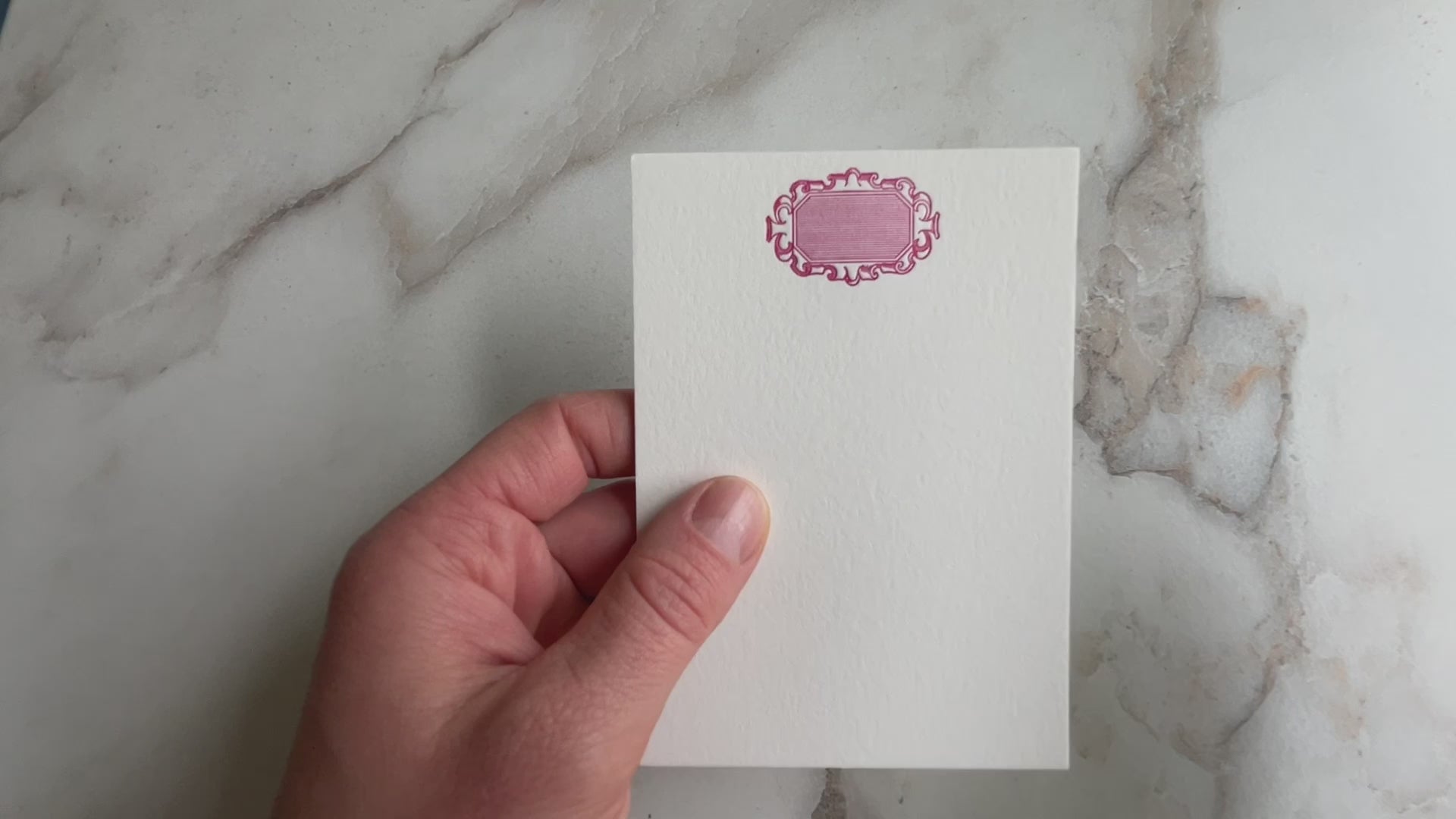 Set of 5 Letterpress Notecards. Each card features a unique decorative frame printed in a different color. Antique letterpress graphics used to print the cards. A wonderful gift to yourself or the stationery fanatic in your life.